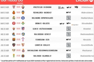 体育资讯4月4日讯 西甲官方公布了第33轮比赛开球时间,4月22日3点30分皇马vs阿拉维斯,4月23日3点30分巴萨vs塞尔塔。