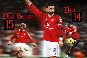 此外,贝克汉姆还将B费的图片P上曼联经典的球衣,写道:新纪录!❤️🤍🖤