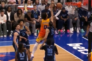 下一篇: 踩弹簧了?拉松中路切入直接起飞单臂隔扣霍勒迪