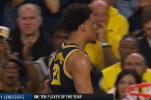 目前比赛上半场,密歇根大学主力也是热门新秀伦德博格在对抗过程中伤到脚踝,虽然坚持罚球最终还是自己走回更衣室。