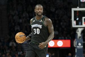 森林狼球员兰德尔上半场发挥稳健,进攻端效率不错,场上拼抢也十分积极。