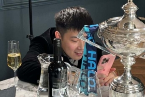 赵心童昨天首次参加世界冠军晚宴,世锦赛冠军奖杯上刻上了中国选手的名字。