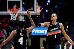 马刺官推晒G1赢球海报:文班亚马+福克斯封面人物